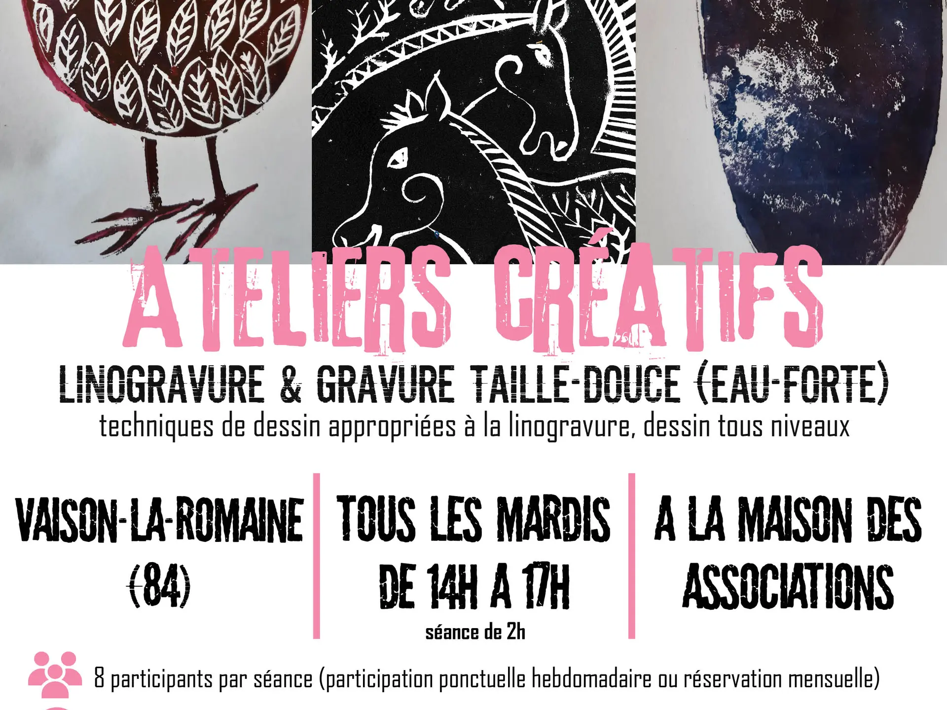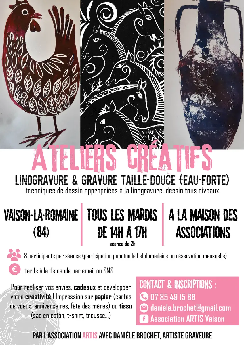 Atelier créatif dans lequel vous découvrirez les techniques de la linogravure et de la gravure taille-douce.