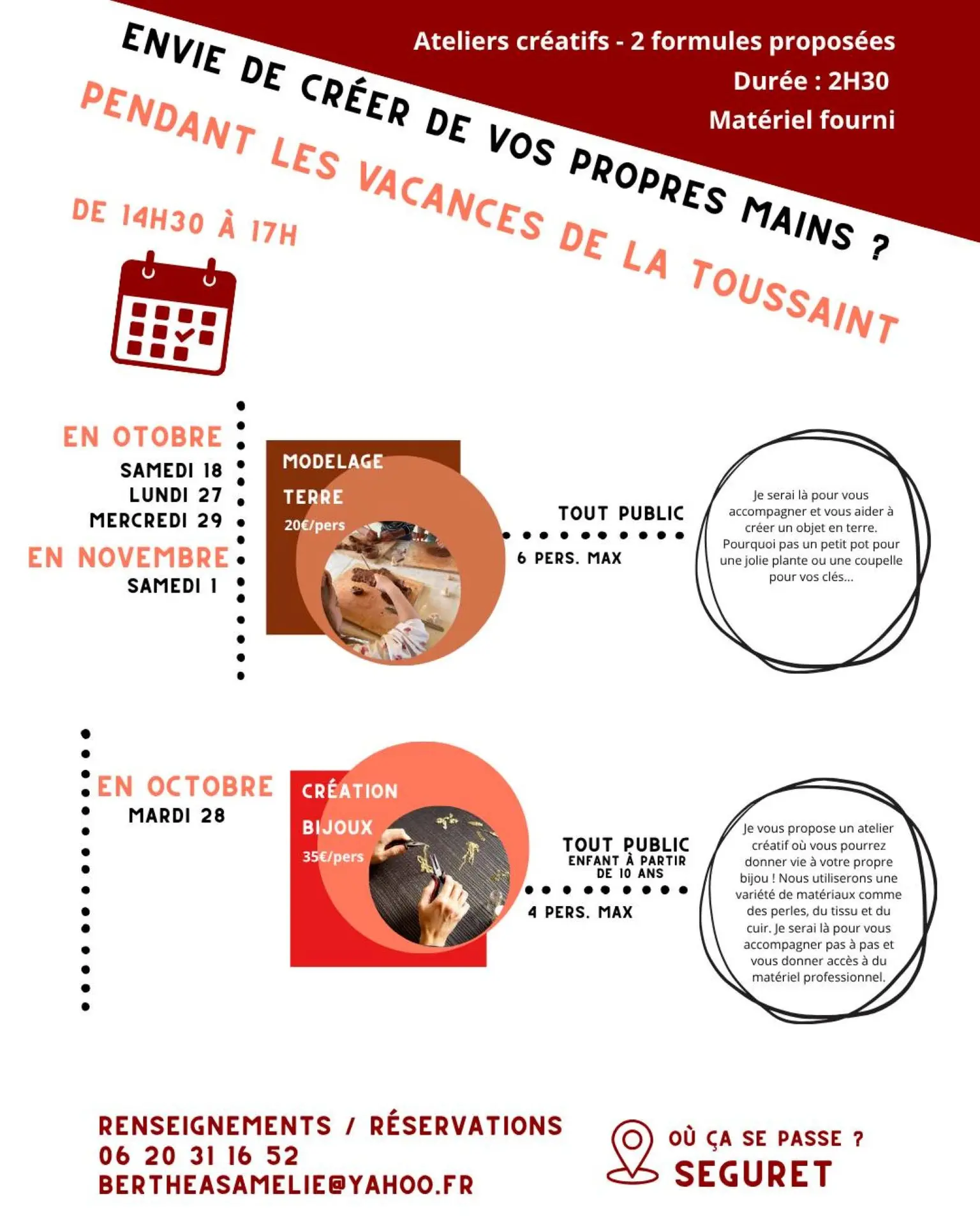 Amélie vous propose un atelier créatif pour découvrir le travail de la terre et créer vos propres objets. Entre amis ou famille, c'est un moyen de partager votre créativité !