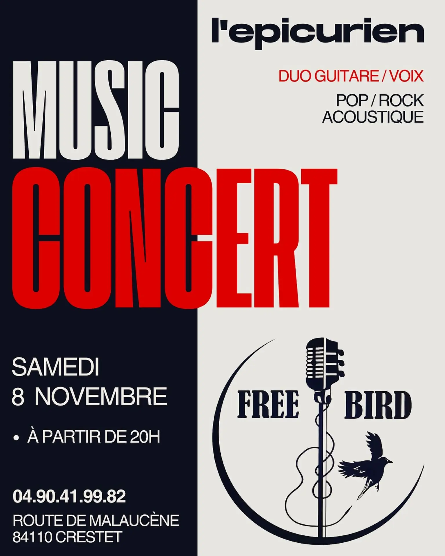 Contactez Concert 'Free Bird' à l'Epicurien