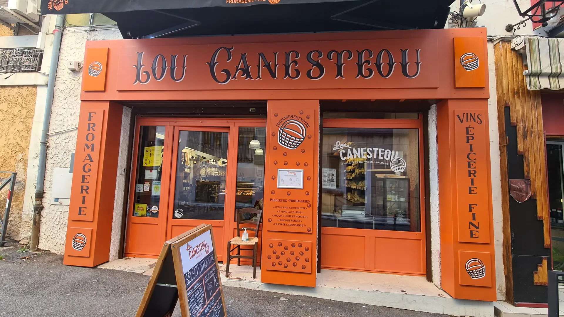 "Lou Canesteou" signifiant panier en osier en provençal, la boutique propose également une sélection de vins, épicerie fine, charcuteries et salaisons qui s'accordent au mieux avec les fromages. Fromage au détail, à la coupe, plateaux sur commande, fromages frais, crème fraîche, yaourts.... C'est le temple des amateurs de fromages et des gourmets avec le petit rayon d'épicerie fine.