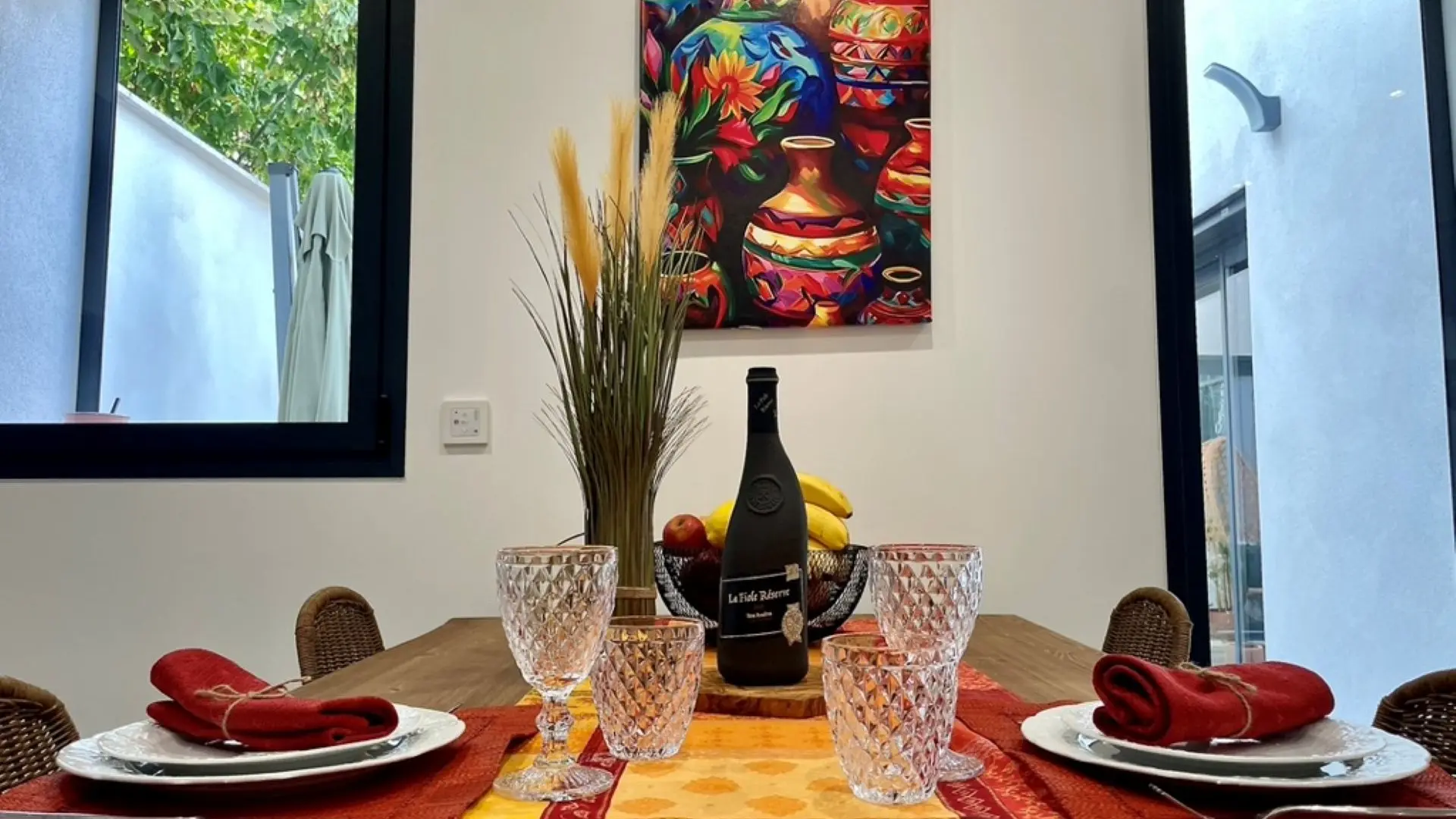 MY Maison Gaby peut accueillir 2 personnes maximum, vous bénéficierez ainsi de beaux volumes avec 65 m2 rien que pour vous, et d'une belle de cour de 30 m2, style hacienda toutes les pièces accèdent à la cour, avec table et chaises de jardin afin de prendre vos repas à l'extérieur ainsi que des chaises longues pour lézarder au soleil !