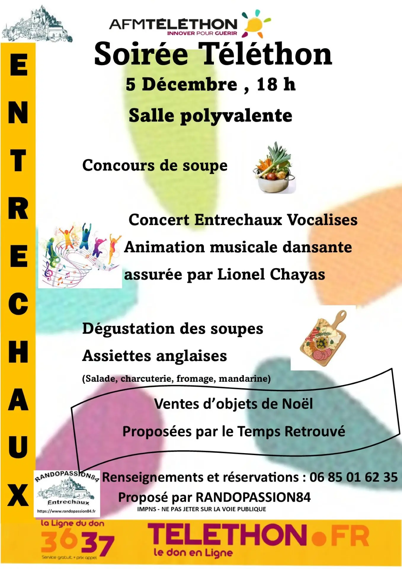 Participez à une soirée conviviale dédiée au Téléthon : concours de soupe, dégustations, musique et ambiance festive. Un moment chaleureux pour se retrouver et soutenir une belle cause.