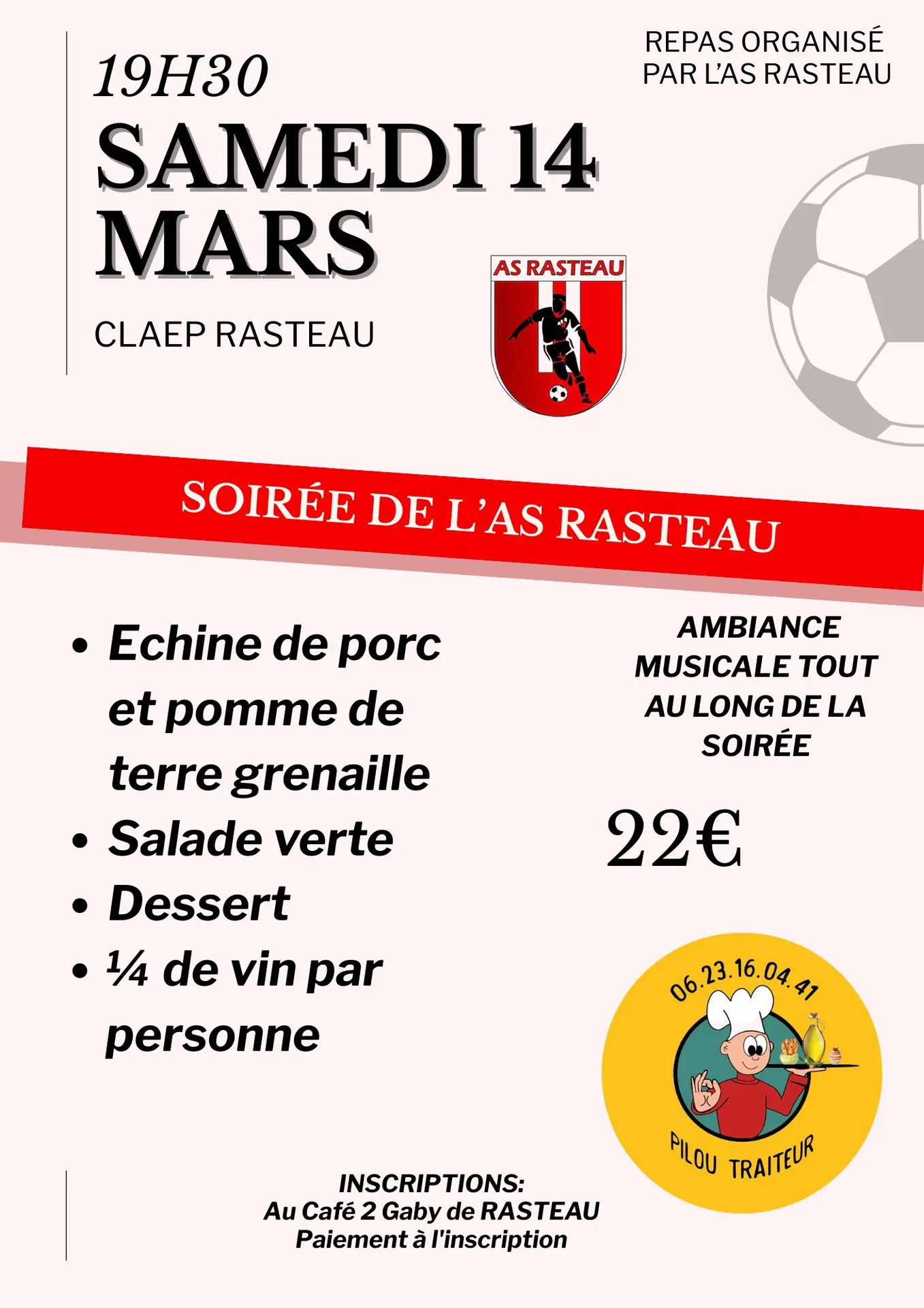 L'AS Rasteau vous attend nombreux pour partager un repas, le tout dans une ambiance musicale
