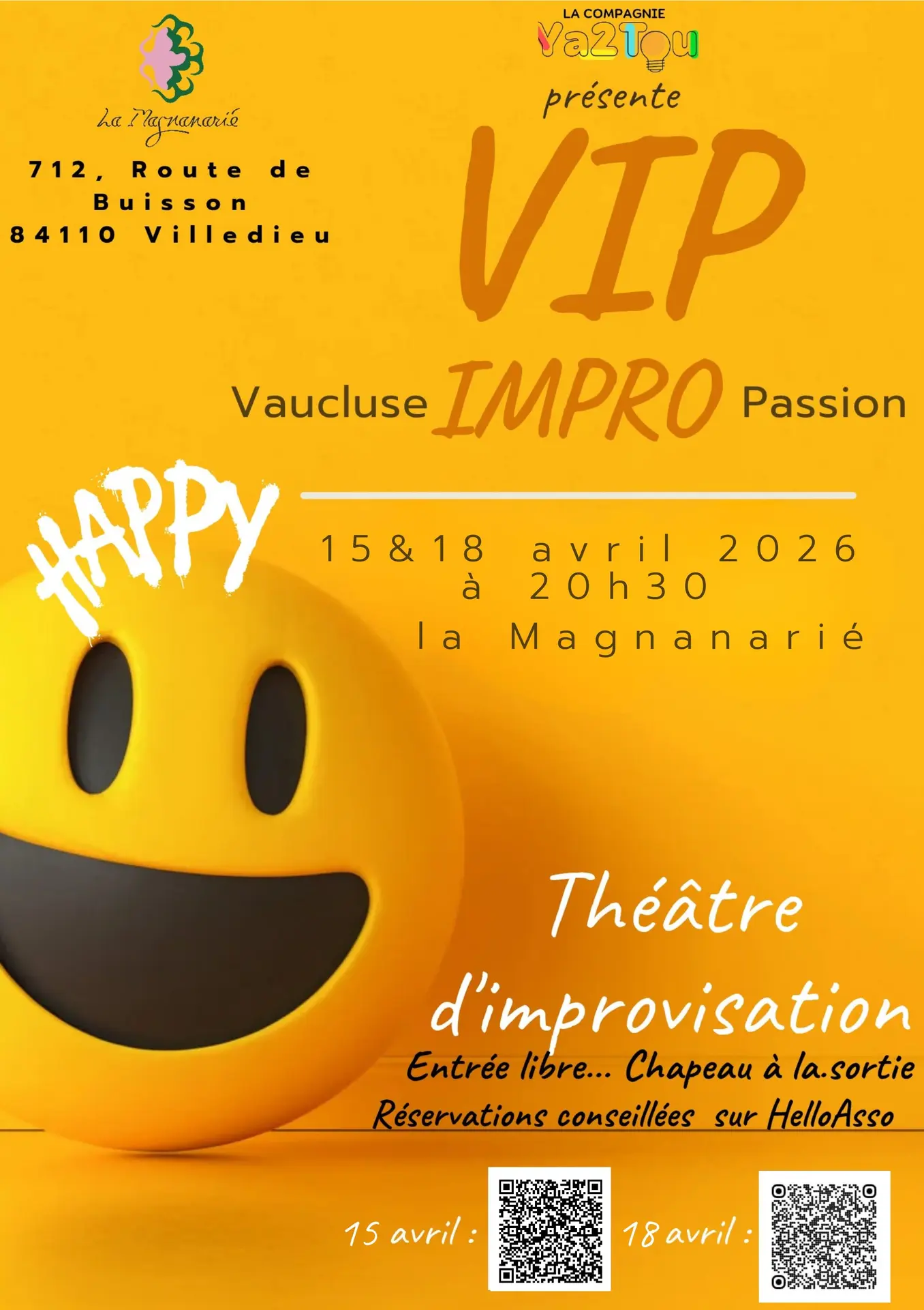 Une cinquantaine d'improvisateurs et improvisatrices se sont réunis à La Magnanarié pour parfaire leur préparation dans le cadre d'un stage, le VIP, le Vaucluse Impro Passion et ils vous proposent de découvrir le résultat : émotions, surprises, rires, et surtout imprévus parce que c'est de l'impro !