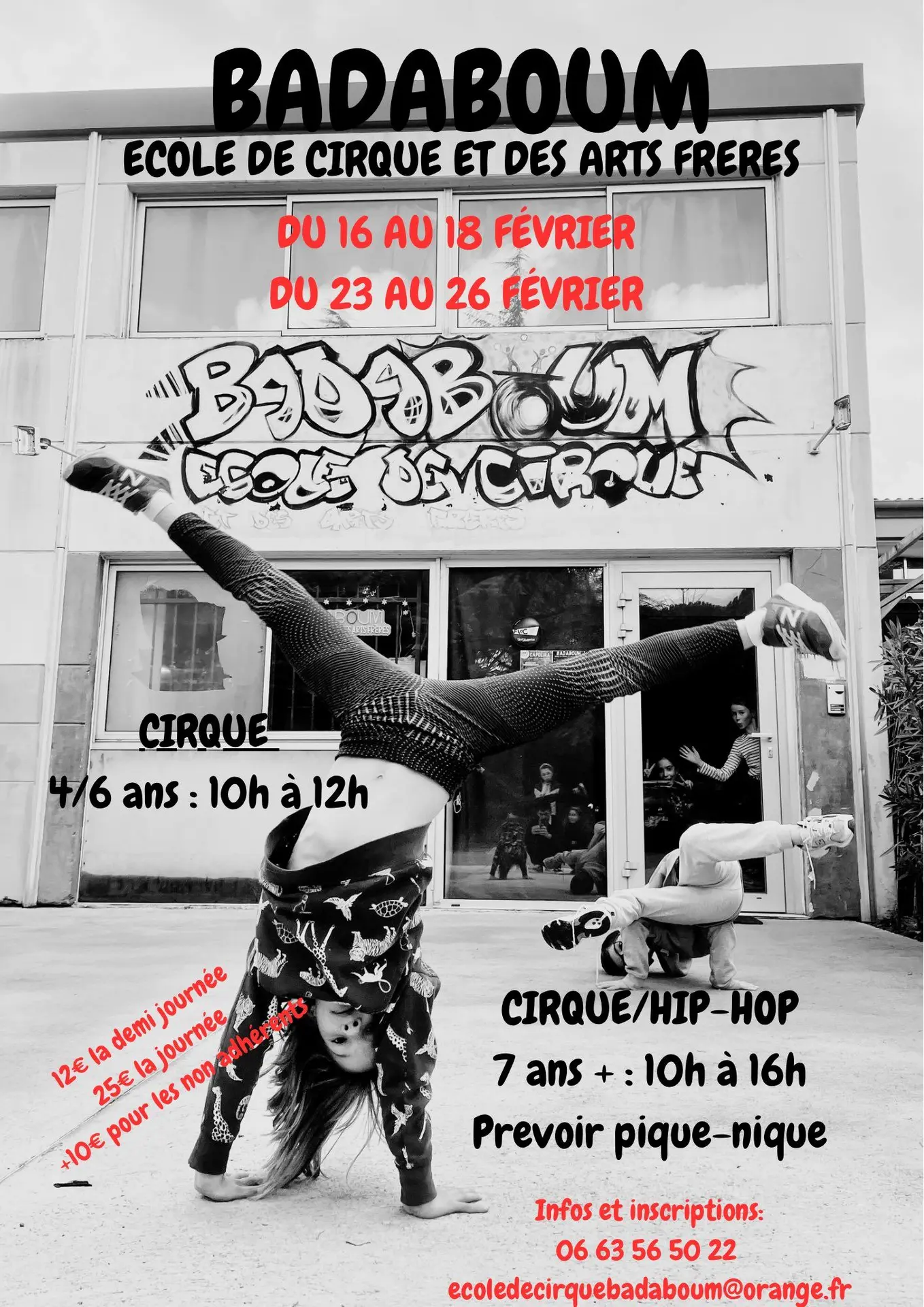 Contactez Stages vacances d'hiver Cirque Hip Hop - Badaboum
